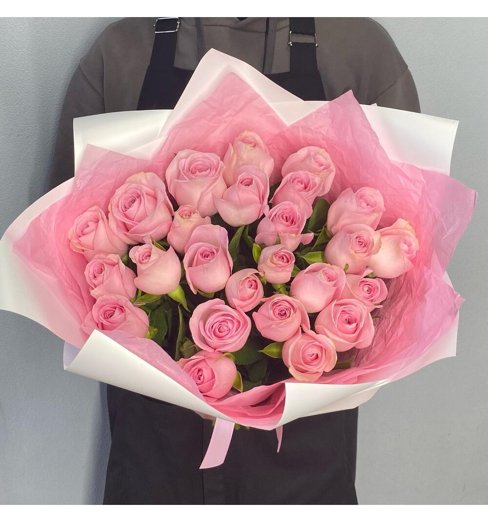 Букет из 25 нежно-розовых роз — воплощение изысканной красоты и нежности. Оттенок нежного розового придает букету особую прелесть и романтичность. Этот великолепный состав порадует сердце своей изысканной элегантностью и подарит теплые чувства в особенные моменты жизни. Букет из нежно-розовых роз станет восхитительным презентом для вашего особенного человека.